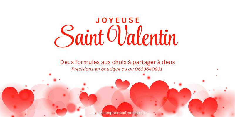 - la FORMULE PLATEAU FROMAGES ( 5 fromages dont deux au moins spéciales Saint-Valentin) & CHARCUTERIE (3 variétés) pour deux personnes